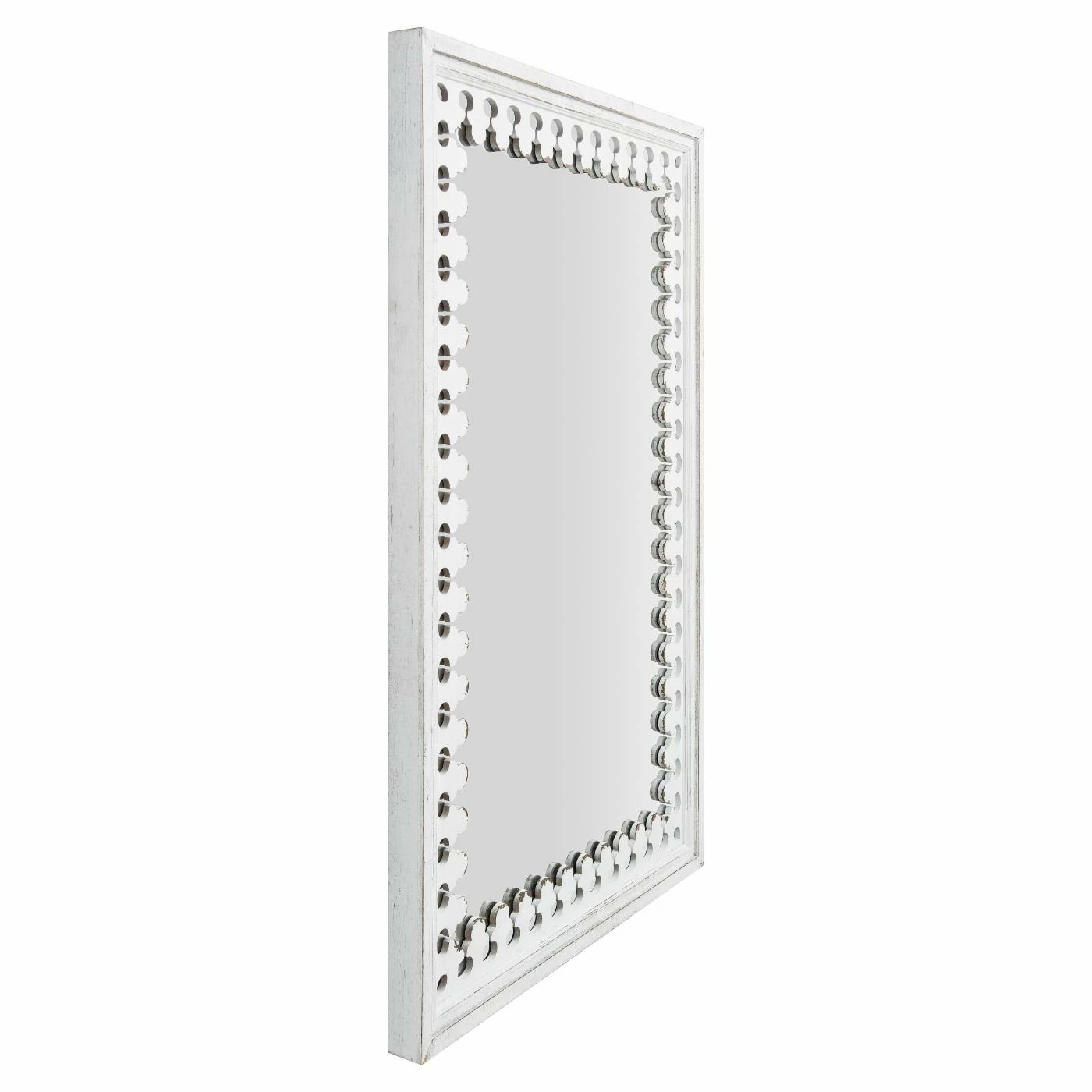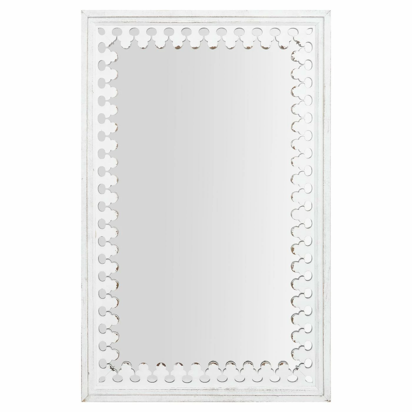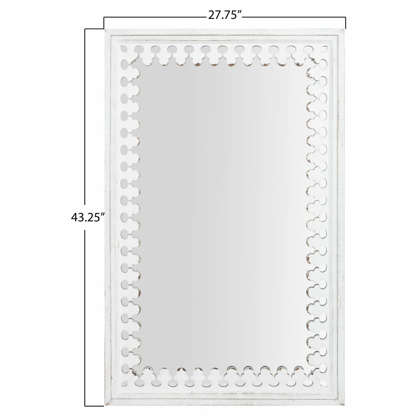 Enhance the farmhouse feeling you’re going for with the 3R Studios Rectangle Wall Mirror – 27.75W x 43.25H in.. This mirror features a distressed white frame with fleur-de-lis detailing. To assist in hanging, metal D-rings are included.
