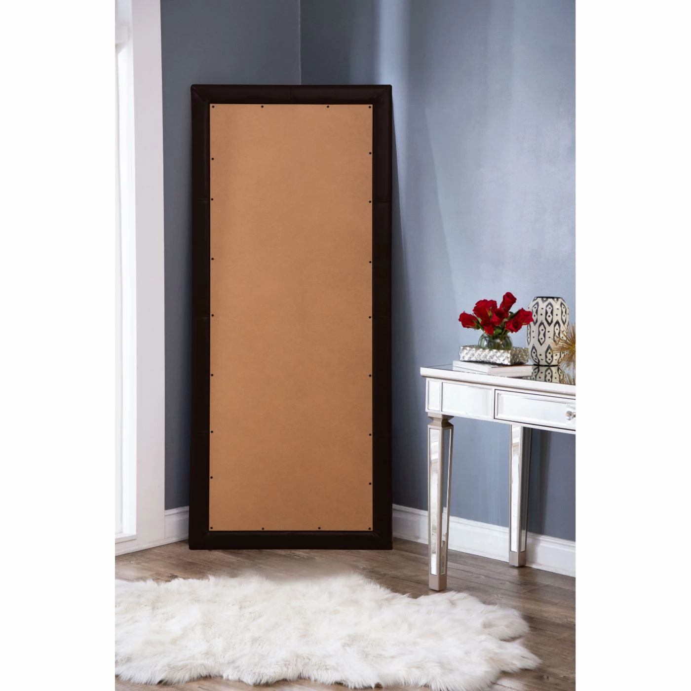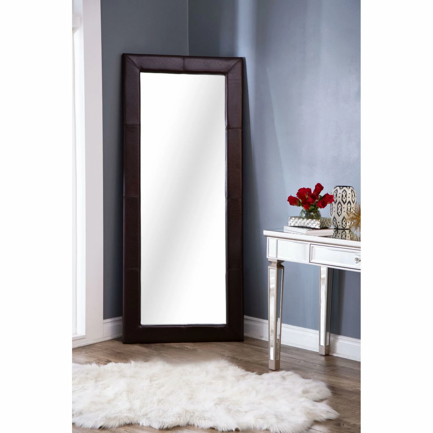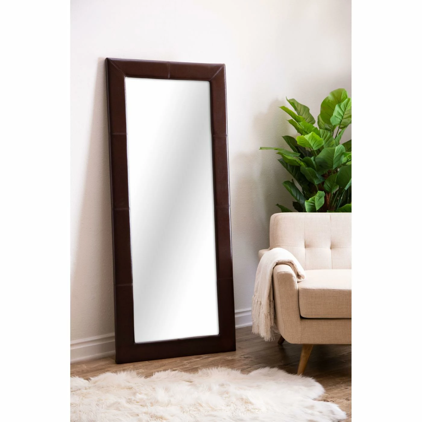 Add a focal point to your space with ourΒ Arlington Large Leather Floor Mirror – Brown. This oversized mirror features a sophisticated brown leather frame and detailed stitching. It easily stands against a wall or corner, making it a fuss-free way to add a contemporary touch to any room.