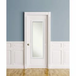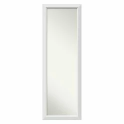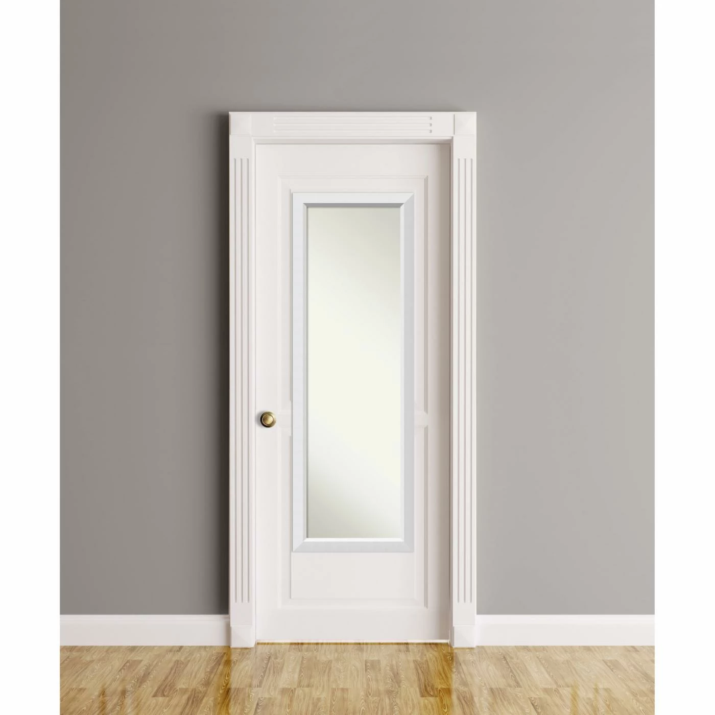 The Amanti Art Blanco On The Door Full Length Wall Mirror – 17W x 51H in. brings a bright touch to any room with its sturdy frame in a satin white finish. This chic wall mirror hangs over your door to give you a full-length view before you head out the door.