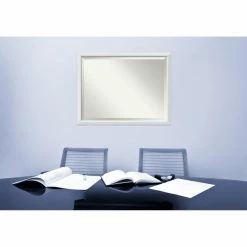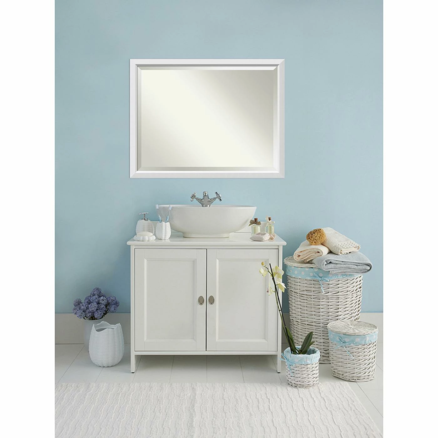 Lend a bright pop of white to your walls with the Amanti Art Blanco Wall Mirror – 43W x 33H in., crafted with a carved wood frame. A beveled edge adds grace to this stylish wall mirror completed in a satin white finish for a versatile look.