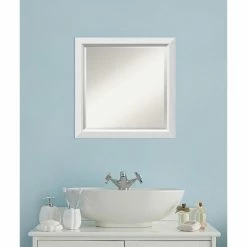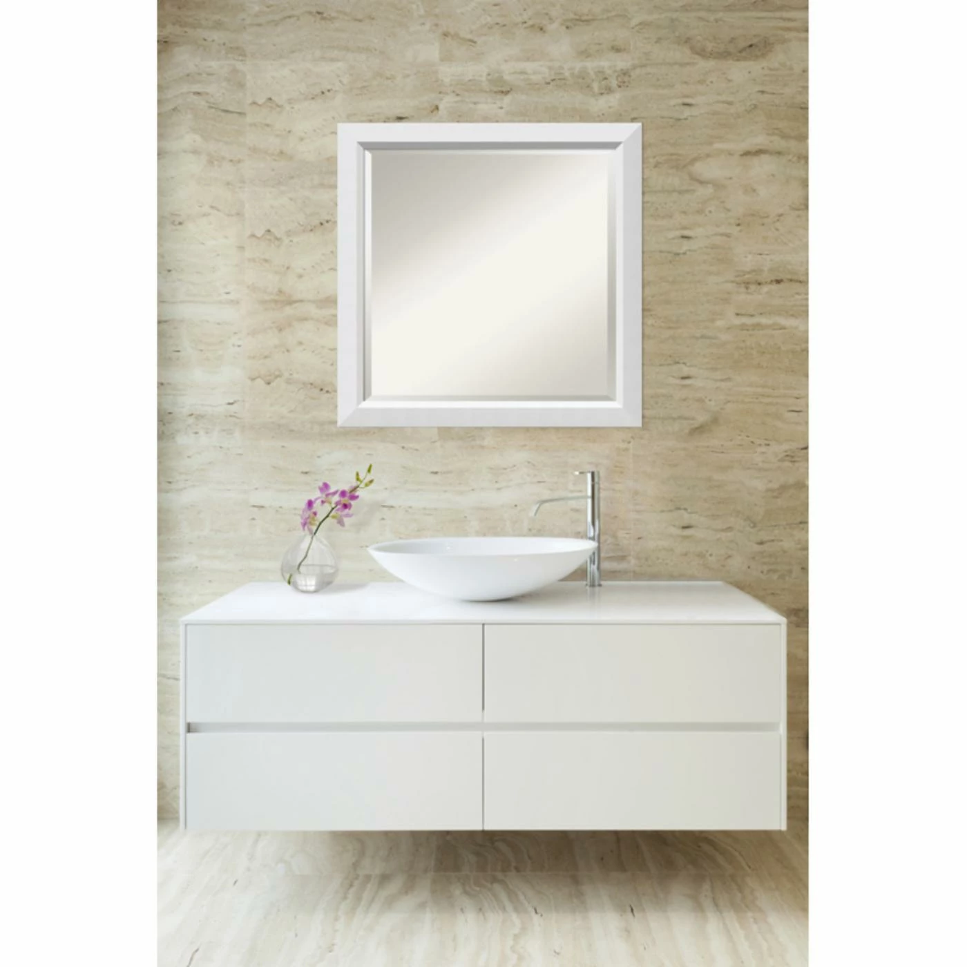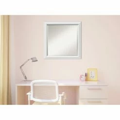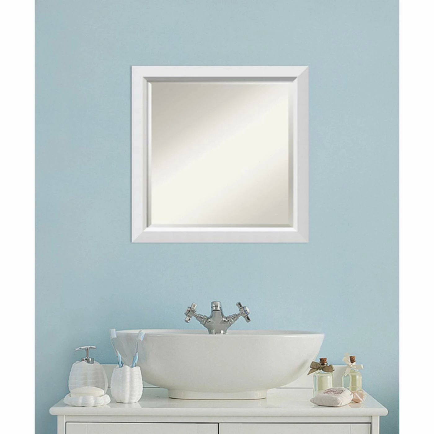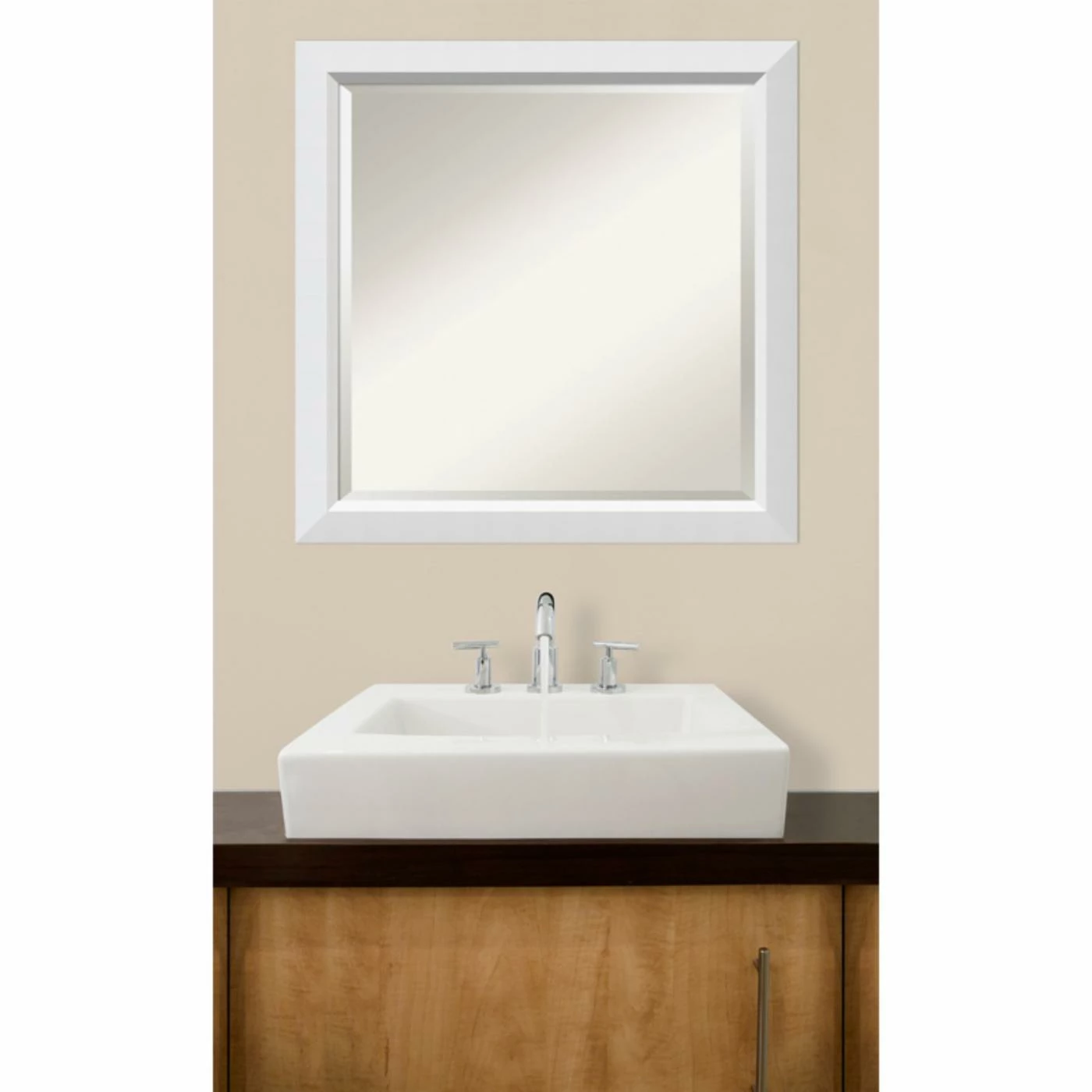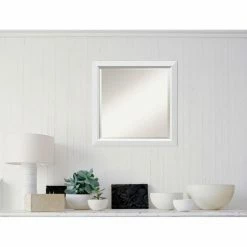 Clean lines and a satin white finish ensure the Amanti Art Blanco White Wall Mirror will complement your contemporary décor. The mirror is handmade in a small, custom art and frame shop in Wisconsin. Its mirror has a beveled edge that sparkles in the light. Choose from available size options.