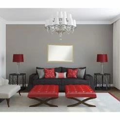 The Amanti Art Champagne Teardrop Wall Mirror – 39W x 27H in. delicately shimmers with a champagne-finished frame highlighted with decorative carvings crafted of wood. This glamorous wall mirror includes a beveled edge to accent contemporary homes as well as classic living rooms.