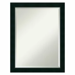 Achieve a look of modern elegance with the Amanti Art Corvino Narrow Black Wall Mirror – 21W x 27H in. This sleek mirror features a wide wood frame in a smooth, matte finish. Beveled edges add a graceful finishing touch.