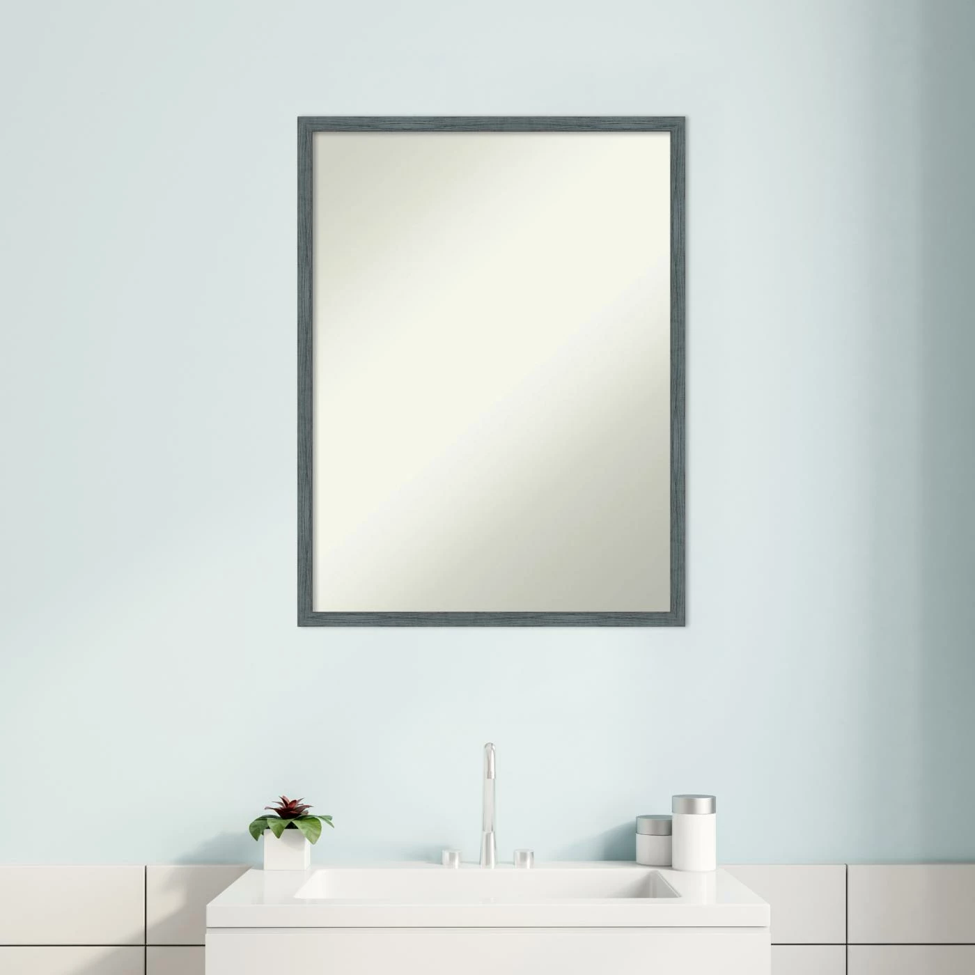 - Features a dixie blue grey narrow 7/8″ wood frame