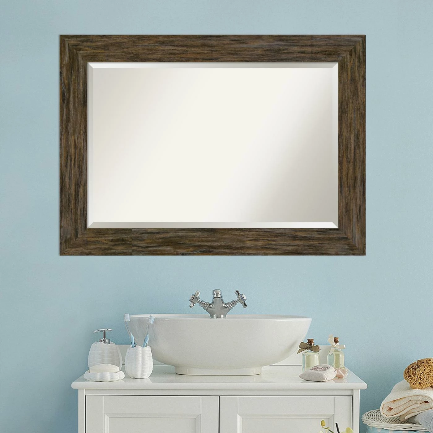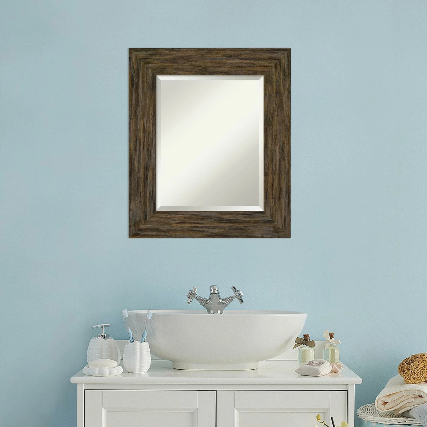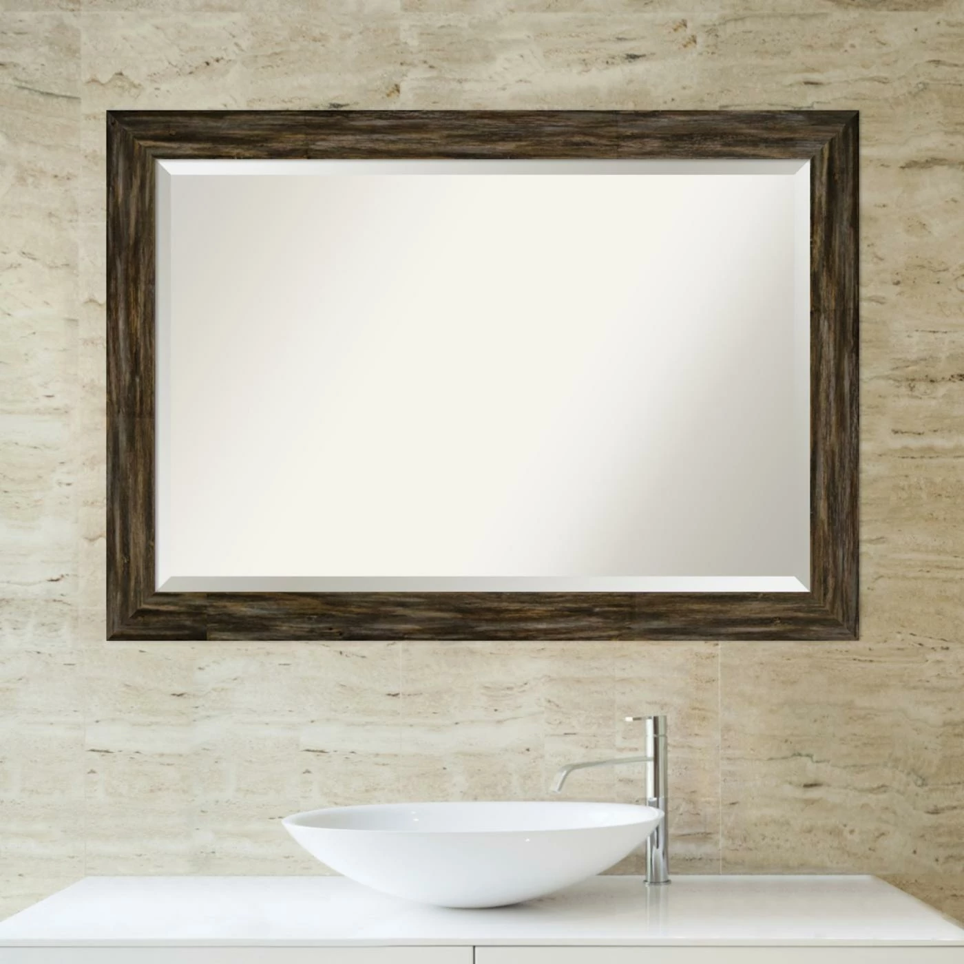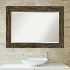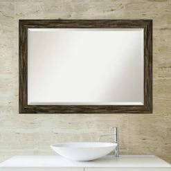 Bring rustic charm to your powder room with the hand craftsmanship of the Amanti Art Fencepost Rectangular Beveled Bathroom Vanity Mirror. The solid wood frame features a flat front and can be hung horizontally or vertically. You can be confident it’ll blend perfectly with your decor, thanks to the selection of available sizes and finishes.
