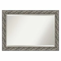 The texture-rich wood frame on this J and S Framing Luxor Wall Mirror is accentuated by a silver finish. The mirror within has a beveled edge that sparkles in the light. This mirror comes in size options and may be mounted horizontally or vertically.