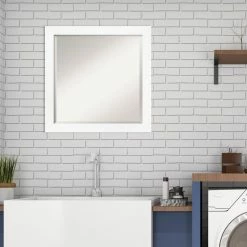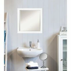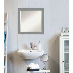 The Amanti Art Narrow Framed Bathroom Vanity Mirror – 23W x 23H in. is equipped with hanging wires for easy installation. This vanity mirror features beveled glass, and it’s surrounded with a polystyrene frame. Choose from the available finishes to best coordinate with your space.