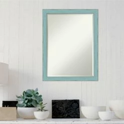 The Amanti Art Sky Blue Rustic Wall Mirror – 21W x 27H in. offers shabby-chic appeal to enhance your dΓ©cor. A distressed blue finish brings out the beauty of the wood frame. Hang horizontally or vertically for versatile functional and visual charm.