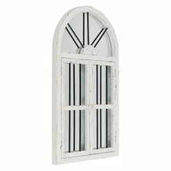 You could spend hours scouring salvage stores and antique dealers for the perfect used window, or you could spend those hours enjoying the Arched Window Wall Mirror – 25W x 42H in.. Inspired by a love salvage-style, this wooden-frame mirror features a distressed white finish on a wood body. The front doors open 180 degrees to give you an unobstructed view of the mirror within.