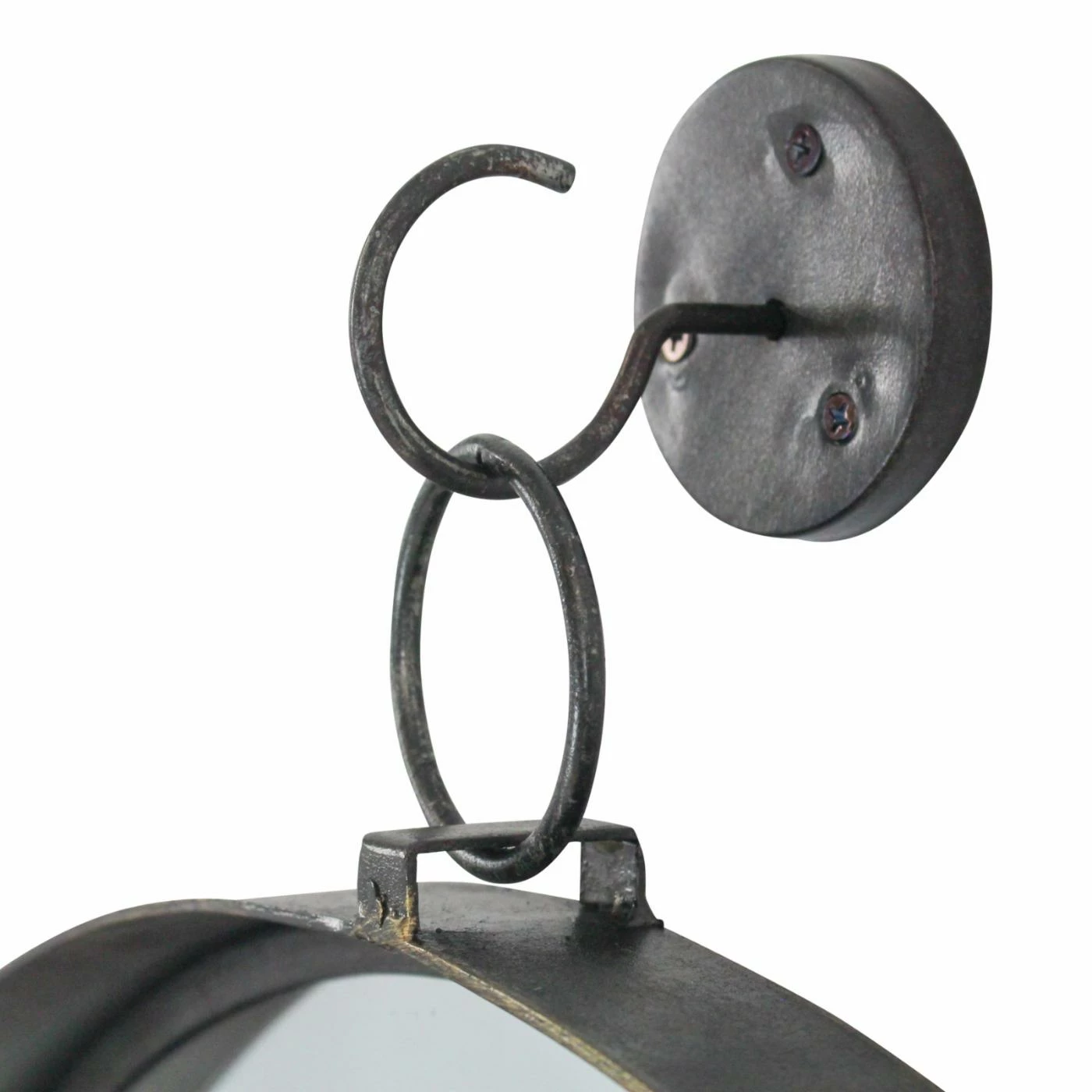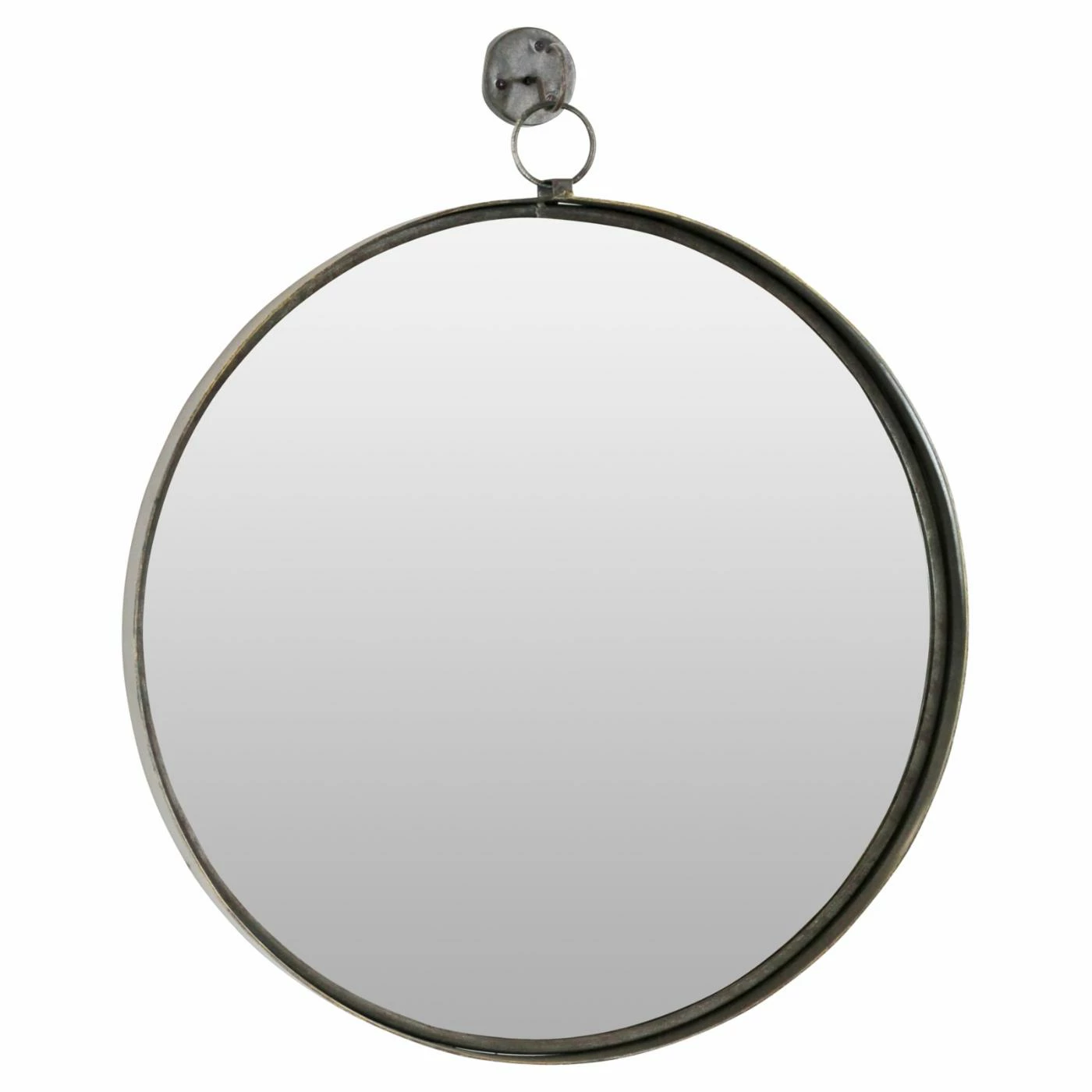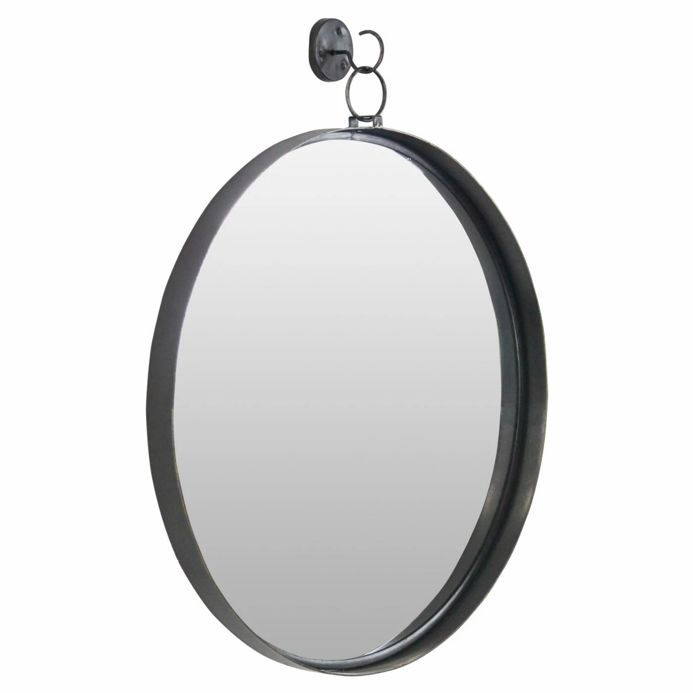 The Aspire Home Accents Bescott Suspended Round Wall MirrorΒ – 24W x 2D x 28H in.brings industrial style to your space. The sturdy iron frame features a dark antique brass finish. It’s suspended from a matching hook to create a dimensional look.