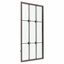 The Aspire Home Accents Kinslee Window Pane Wall MirrorΒ – 23.5W x 1.5D x 38H in.is patterned after a home window for a unique addition to your wall. This wall mirror is framed in dark metal with decorative floral designs in the center.