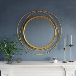 With its lovely round shape and gold finish, the Aspire Home Accents Mia Wall Mirror – 32 diam. in. is an enchanting sight to behold in any space. The curves accenting the mirror glass are crafted from metal and let it blend with many decor styles. Hang it on your bedroom wall, living room, or bathroom easily in minutes.