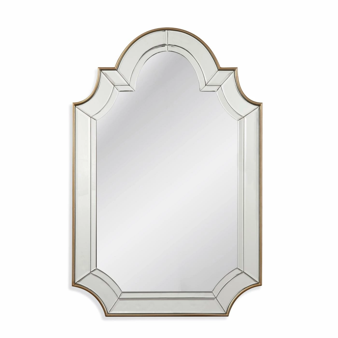 The Bassett Mirror Phaedra Wall Mirror – 30W x 46H in. has a refined traditional design that will make it a showpiece in your home for years to come. This elegant mirror is made of glass with a champagne-finished lining along its frame. The segmented frame has beveled edges and lovely curves.