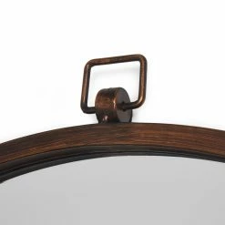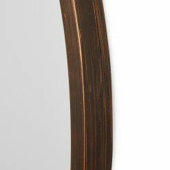 The Quinn Wall Mirror – 36 diam. in. graces your space with its vintage Hollywood glamour. This gorgeous round metal pendant frame features an antiqued bronze finish and beveled mirror glass.