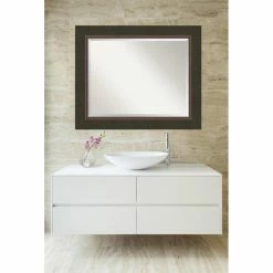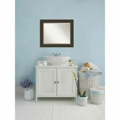 Including hanging hardware, the Amanti Art Bathroom Wall Mirror – Milano Bronze is immediately ready to add beauty and sophistication to any home. Perfect as a cabinet mate or on its own, this bronze finished mirror is made from solid wood. Hang vertically or horizontally to fit any sized wall.
