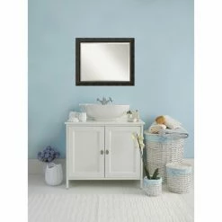 Featuring a black stain with bronze vein accents, the Amanti Art Bathroom Wall Mirror – Signore Bronze appears hand-painted with care. A sturdy wooden frame supports this beautifully beveled mirror. Pair with a cabinet or use as a piece by itself to make a statement on any wall.