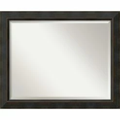 Featuring a black stain with bronze vein accents, the Amanti Art Bathroom Wall Mirror – Signore Bronze appears hand-painted with care. A sturdy wooden frame supports this beautifully beveled mirror. Pair with a cabinet or use as a piece by itself to make a statement on any wall.