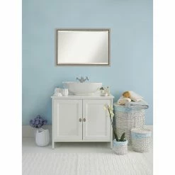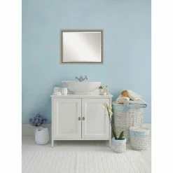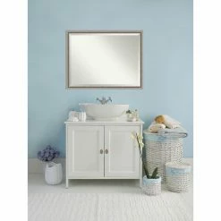 The Amanti Art Bel Volto Bathroom Mirror infuses your bathroom with modern style with a carved wood frame in a trendy distressed silver finish. This ultra-chic bathroom mirror includes beveled edges, and the detailing around the frame enhances any bathroom in your home with visual interest.