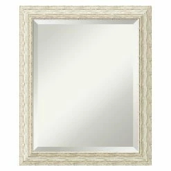 Invoking seaside style, the Amanti Art Cape Cod Bathroom Mirror features a durable carved wood frame in a distressed white wash finish. This beachy-chic bathroom mirror is a nice way to lighten up your guest bath, powder room, or main bathroom in carefree coastal appeal.