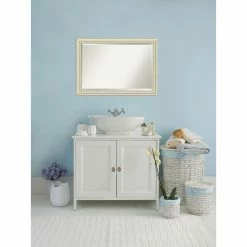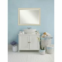 Create classic country farmhouse style with the Amanti Art Country White Wash Bathroom Mirror, enhanced with a wood frame in a soft white wash cream finish. This rustic bathroom mirror looks charming when hung over a vanity, and the beveled edges bring it a refined finishing touch.
