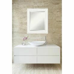 Add charming style in your bathroom with the Amanti Art Craftsman Bathroom Mirror, featured in a bright white finish with a carved wood frame. This versatile bathroom mirror looks graceful in a child’s bath, powder room, or over the vanity in your own master suite.