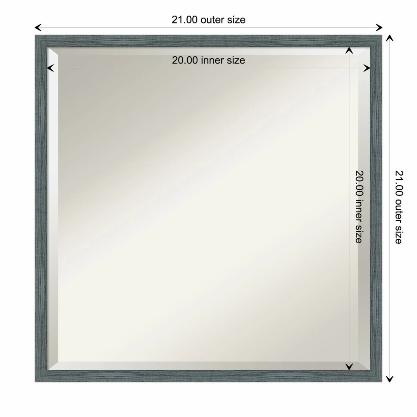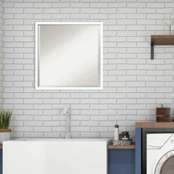 The Amanti Art Decorative Framed Beveled Square Wall Mirror – 21W x 21H in. is the perfect mirror to accentuate your bathroom vanity or living room decor. The beveled mirror is surrounded by a wood frame in your choice of finish. The range of finish options mean this mirror can blend into almost any styling; from farmhouse coastal to glam. This mirror can be hung either vertically or horizontally with the included hanging hardware.