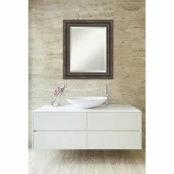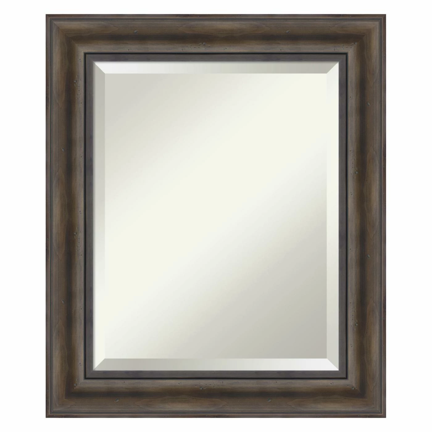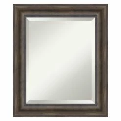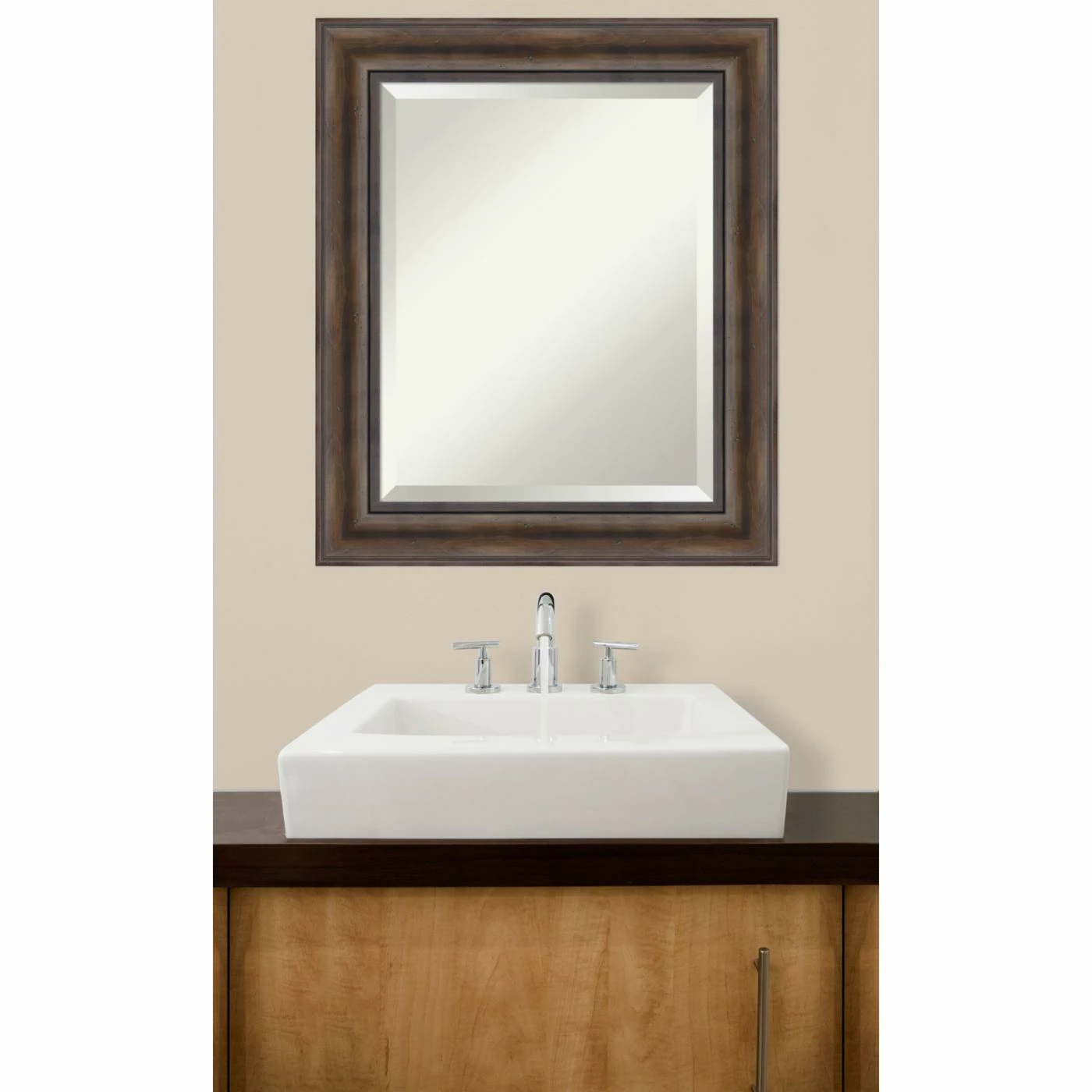 The Amanti Art Rustic Pine Bathroom Mirror will give your bathroom a farmhouse or lodge vibe thanks to a carved wood frame in a deep antique copper finish. This sleek yet simple bathroom mirror is ideal for a cozy lodge or any bathroom in your rustic-inspired home.