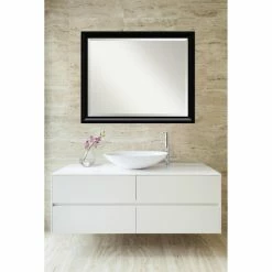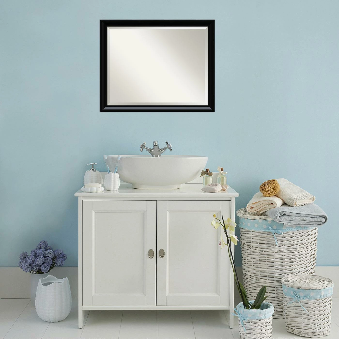 Enhance your bathroom with boldness when you hang the Amanti Art Steinway Bathroom Mirror over your vanity. This dramatic bathroom mirror features a smooth carved wood frame in a modern satin black finish, and beveled edges round out its sophisticated look.