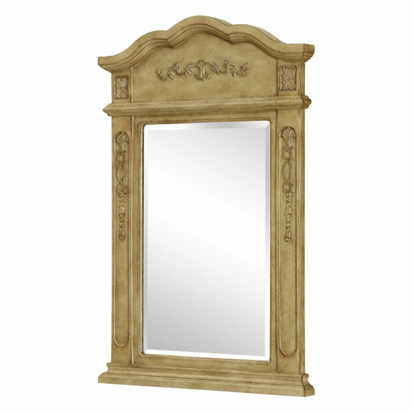 Top your vanity with this beveled Elegant Furniture & Lighting Danville Vanity Mirror – 24W x 36H in.. It showcases alluring birch wood construction and a soothing beige finish. It possesses glam, traditional, and transitional design elements.