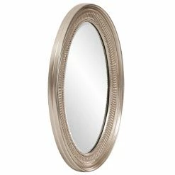 The Elizabeth Austin Ethan Mirror – Nickel – 21W x 31H in. has a simple style that’s easy to incorporate into any decor. Its oval mirror features a thick bevel around the edge and a sturdy frame made from solid acrylic resin. The frame features a notched, ribbed design on the interior ring and is protected with a beautiful brushed nickel finish. Whether in the bedroom, above your couch, or anywhere in your home, this piece is a natural fit. The mirror weighs only 11 lbs. and can be hung vertically or horizontally.