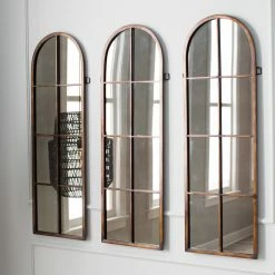 Here’s what you need to know to hang your new mirror. Hanging a mirror, even if it is a large heavy piece, is not a problem if you have the right hanging hardware and a hammer. The best hanging hardware for most walls is the J-hook. It is designed to keep the nail that goes into the wall at a sharp angle, so that even in drywall, it will stay in place. It is important that the J-hook be properly weighted for the item you want to hang. On this products, the proper J-hook and nails are included to make sure you have exactly the hardware you need for hanging each piece. On the largest mirrors, we provide a self-leveling adjustable J-hook. With this hardware, even if the item is slightly uneven, the hangers can be adjusted without moving the nails from the wall.