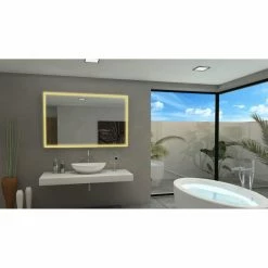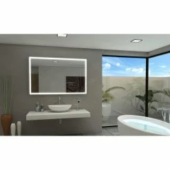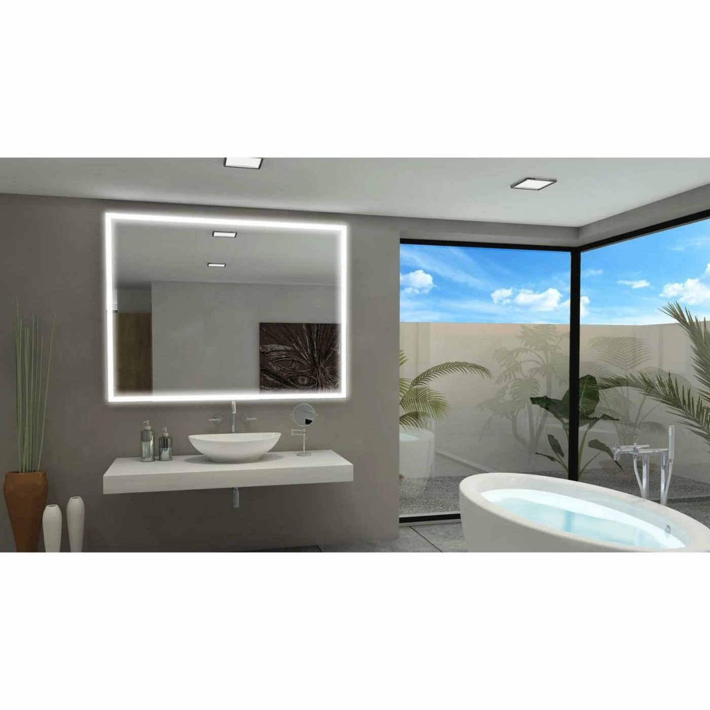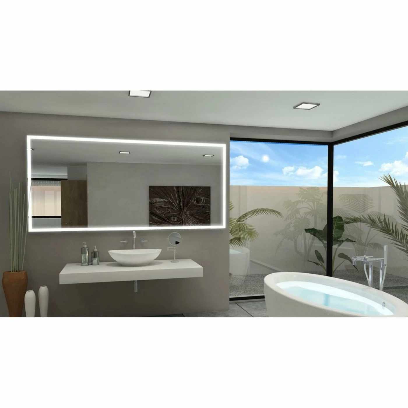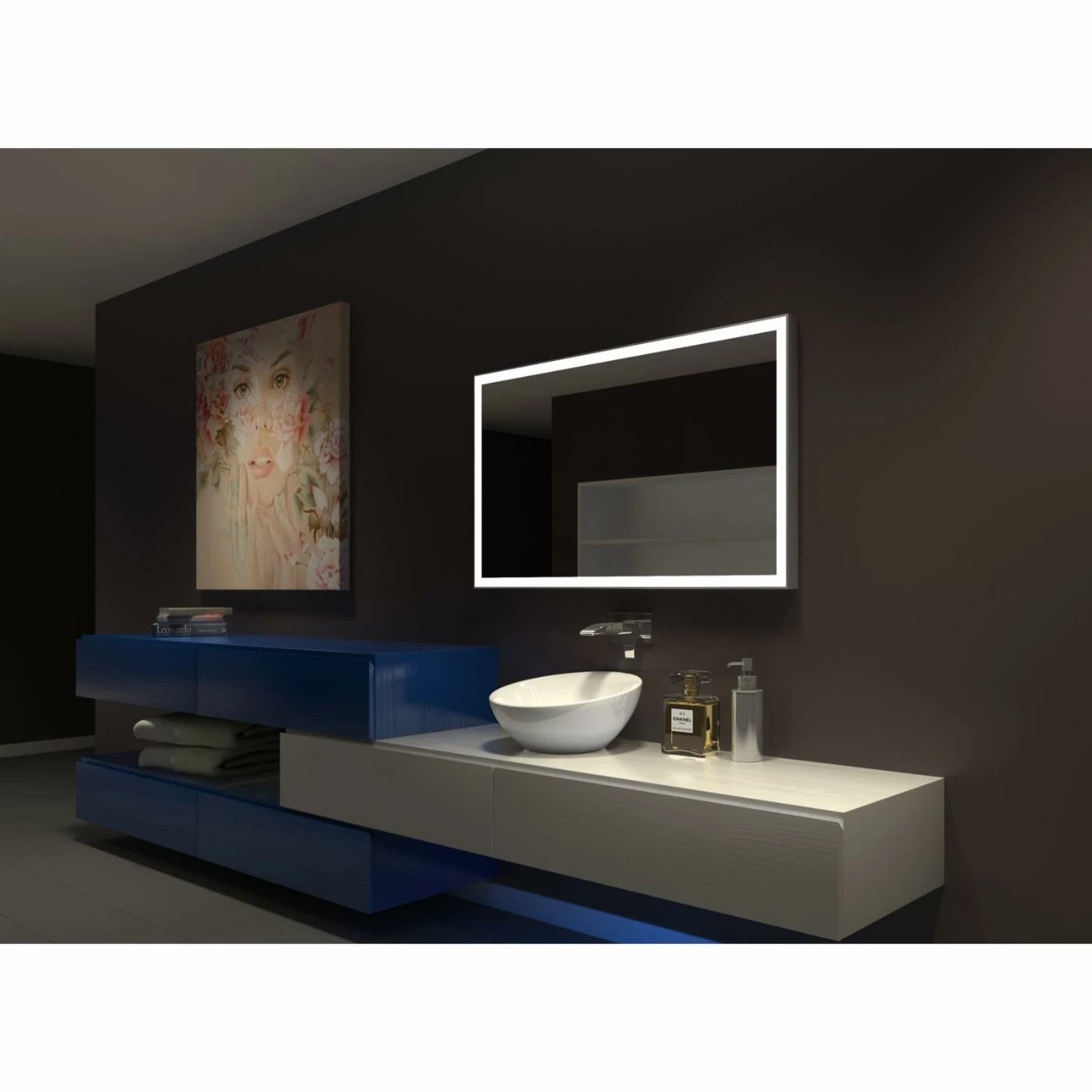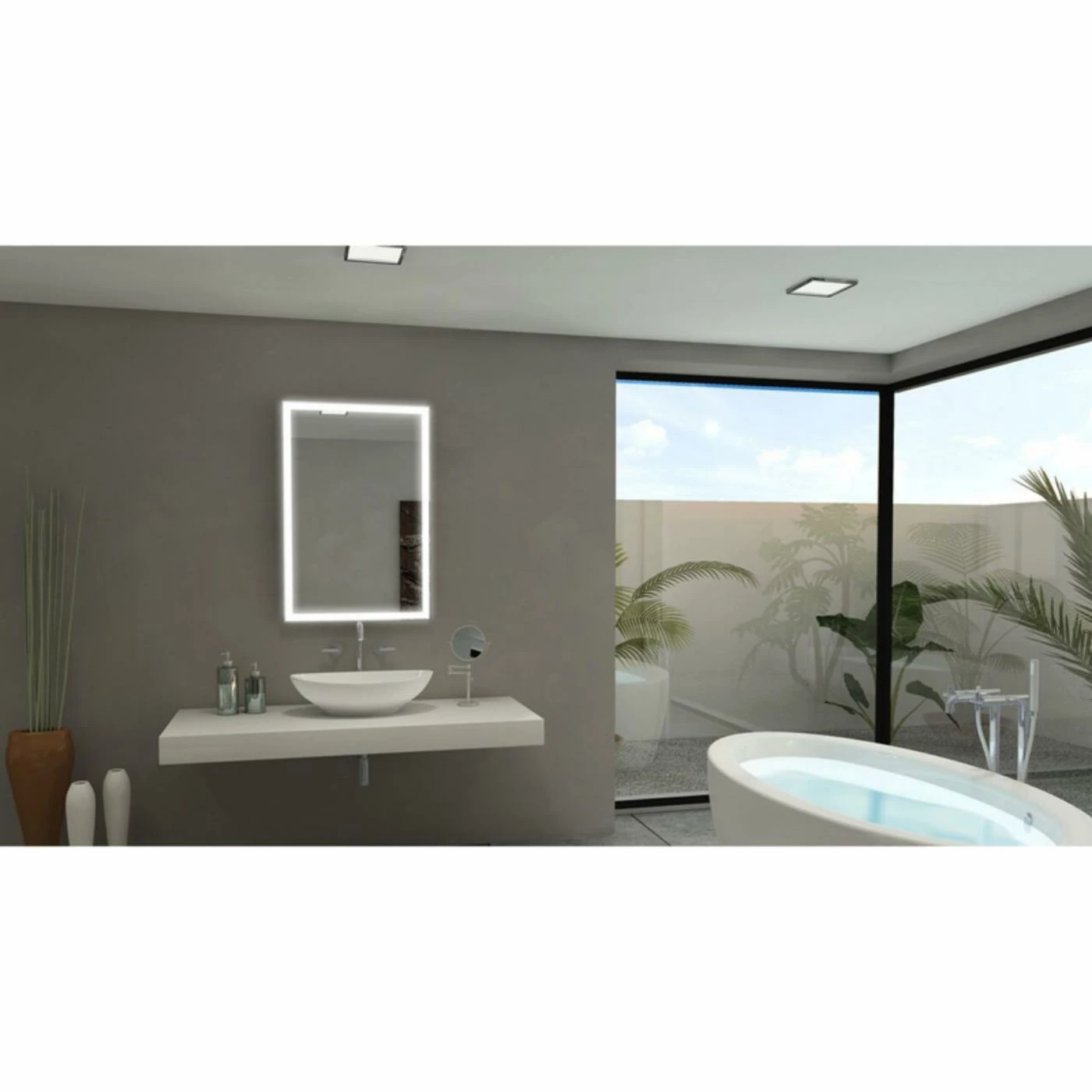 The Paris Mirror Dimmable Galaxy Illuminated Rectangle Vanity Mirror makes your bathroom feel cleaner and brighter with hardly any effort. This beautiful rectangular mirror is made from durable glass and features an expansive, flat surface. The mirror can be displayed vertically or horizontally, as desired, but must be hardwired for installation. The border of the mirror is equipped with backlighting, offering a soft, beautiful glow with a dimmer control. Select from available size options.