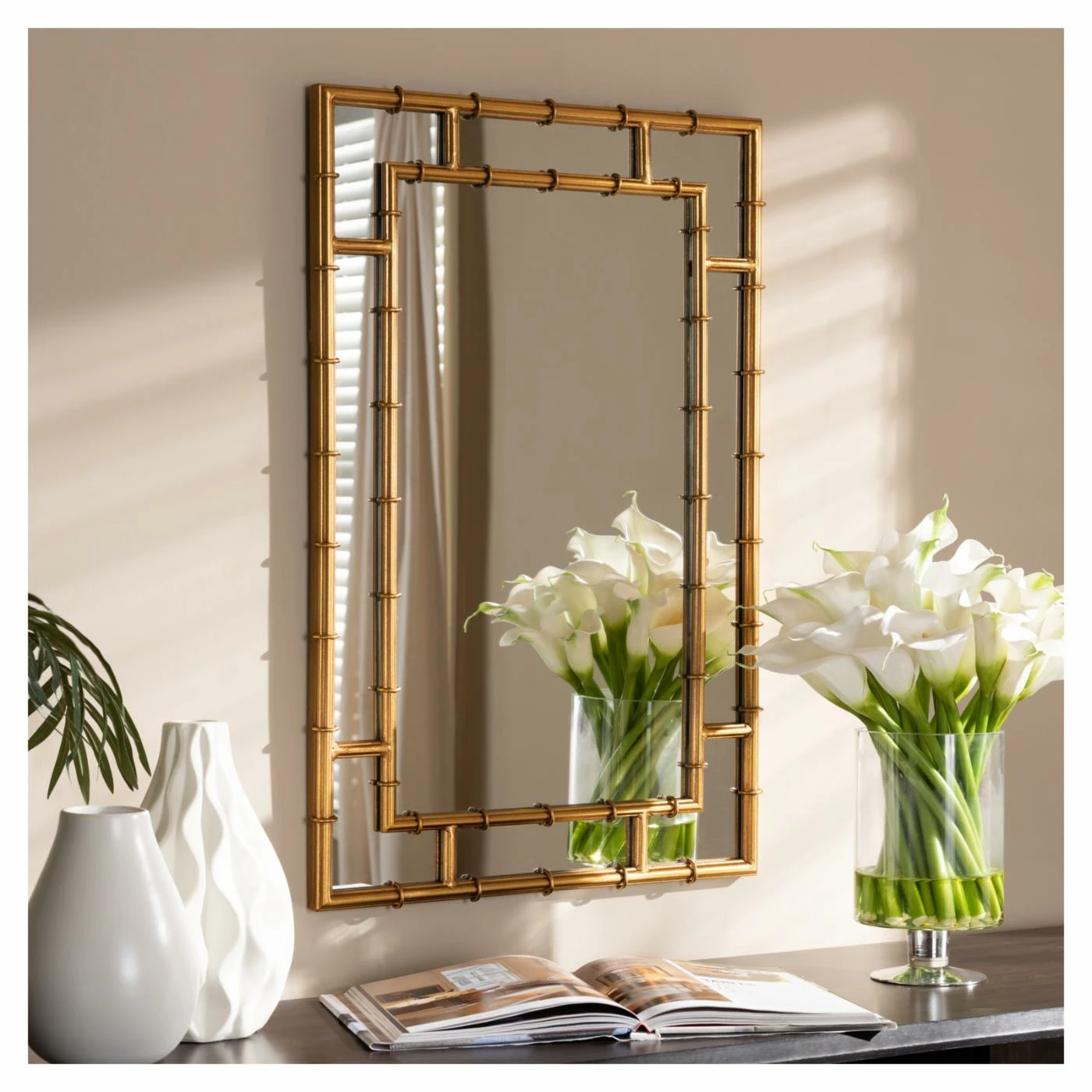 Bringing modern design and organic elements together, the Baxton Studio Adra Bamboo Wall Mirror – 21.5W x 32.25H in. boasts a metal frame that’s crafted to mimic stalks of bamboo. This contemporary wall mirror melds the natural world with updated style to give your home a flash of visual interest. The sleek gold finish makes it a warm addition to any chosen space.