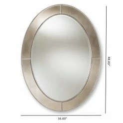 With its classic oval shape, the Baxton Studio Branca Oval Wall Mirror – 36W x 48H in. brings any room a dash of sleek design. This large wall mirror boasts additional sections of mirror around the frame to give it a bright, reflective boost. Beaded detailing and an antique silver finish round out its glam aesthetic.