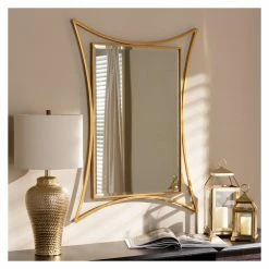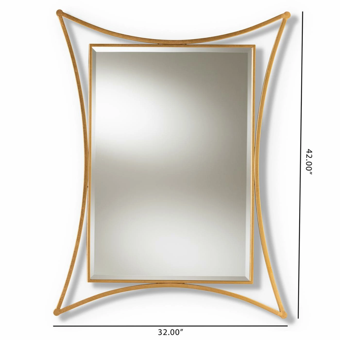 Crisp and modern, the Baxton Studio Melia Wall Mirror – 32W x 42H in. adds an aura of space-age style to your home. This contemporary wall mirror boasts a slender metal frame that’s enlivened in an antique gold leaf finish for bright appeal. The rectangular center mirror boasts beveled edges for a gracefully lux finishing touch.