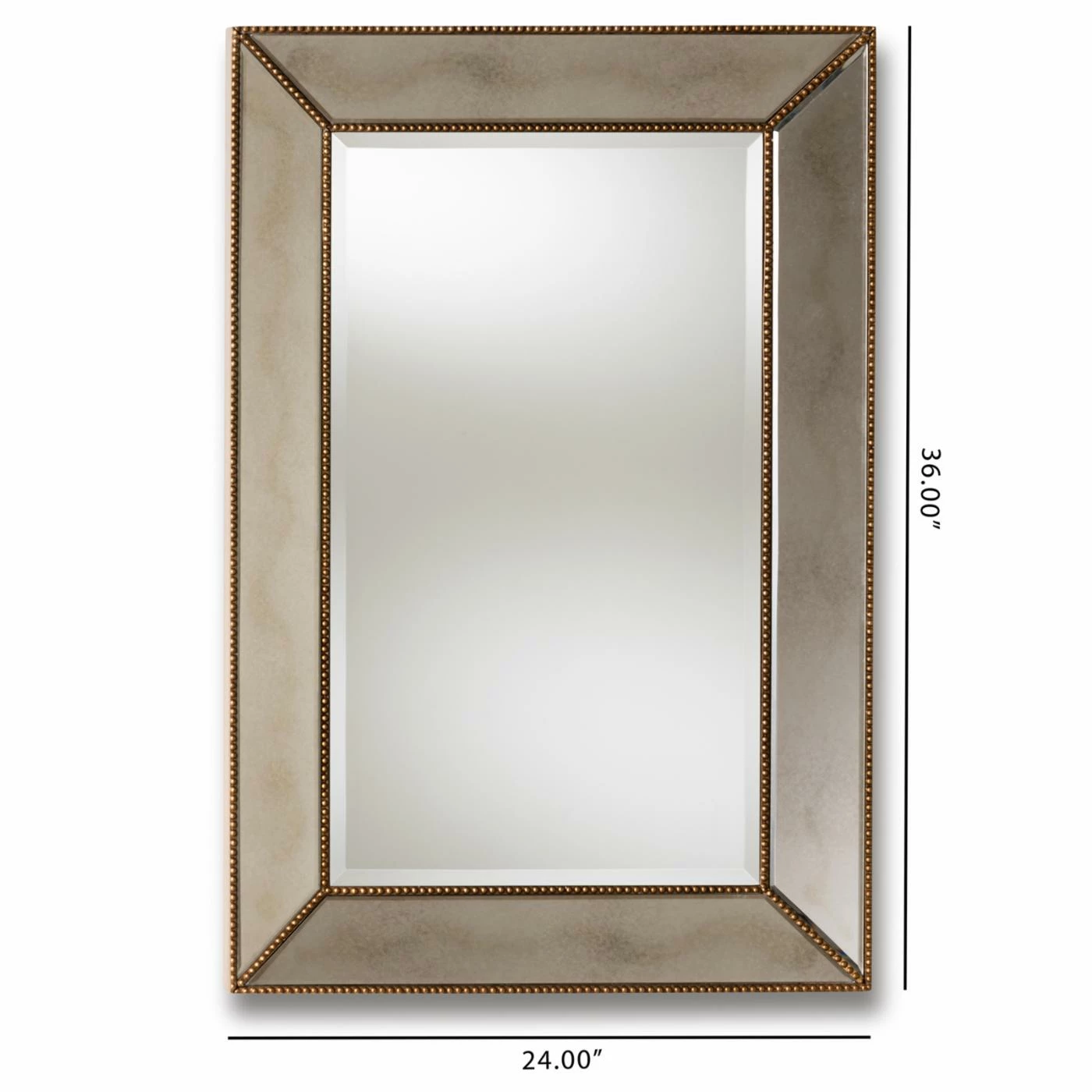 Give your walls something divine with the Baxton Studio Neva Wall Mirror – 24W x 36H in., which is accented with glass mirrored inlay around the frame. Beaded detailing in a rich antique gold finish gives this rectangular wall mirror an added sense of depth and dimension. Hang it horizontally or vertically for the ideal aesthetic in any room.