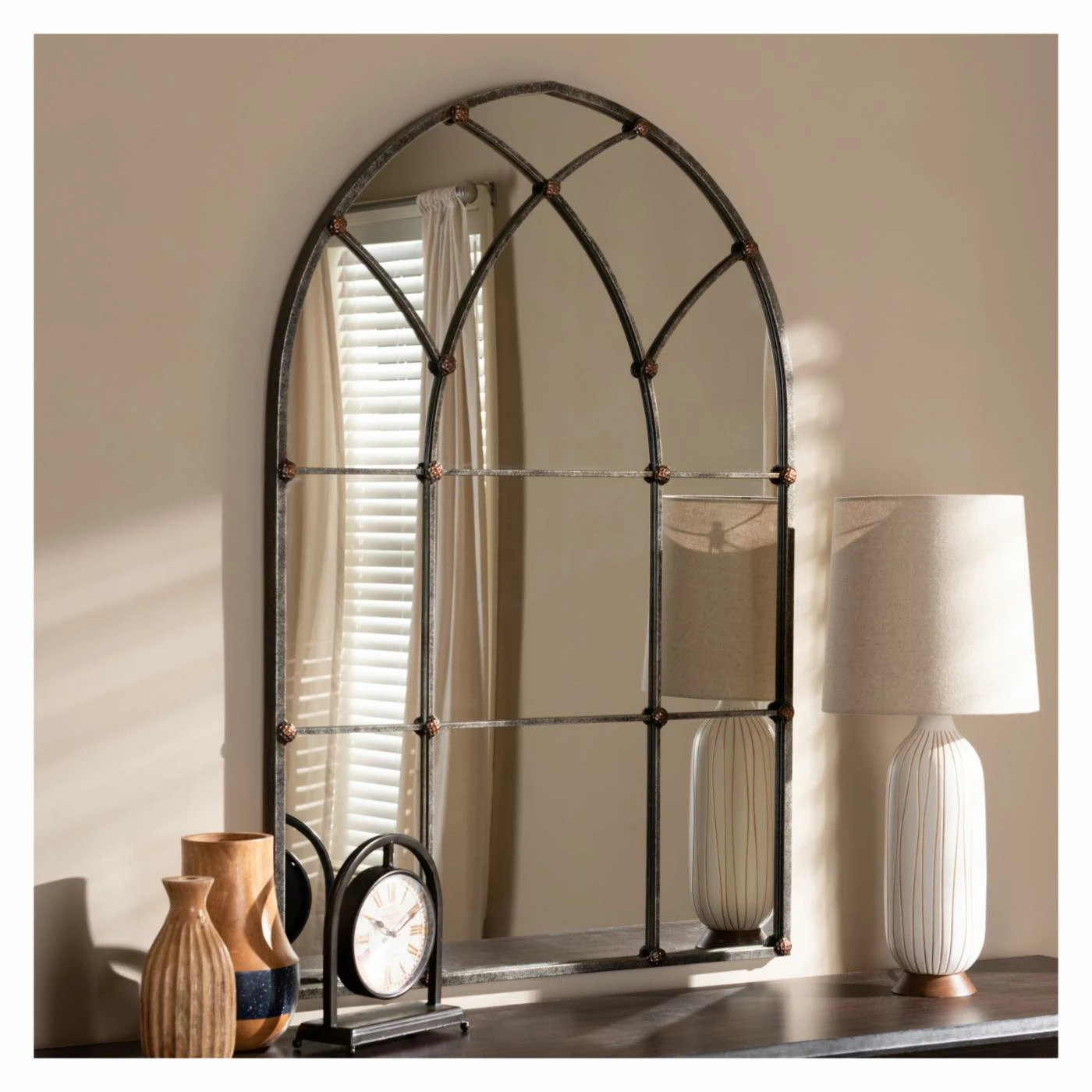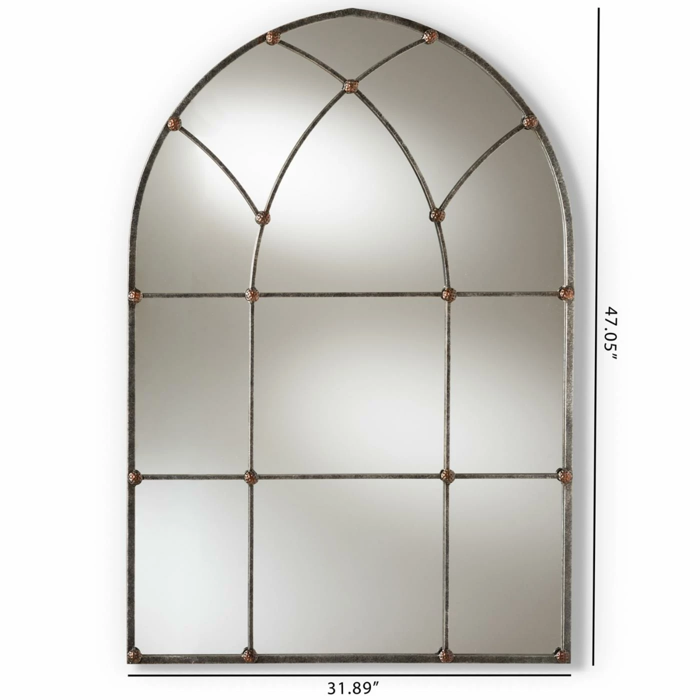 Embolden your home design with the Baxton Studio Tova Arched Window Wall Mirror – 31.89W x 47.05H in., which is crafted in an arched window design. Inspired by vintage architecture, this impressive wall mirror includes a detailed metal overlay in a rich antique silver finish. Raised details throughout lend it a touch of unique texture and an abundance of visual interest.