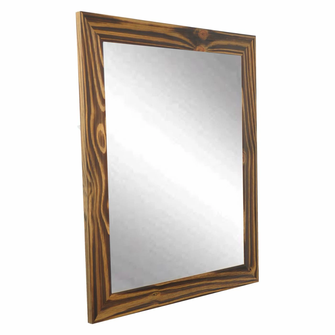 Exotic wood grain with a striped effect allows the BrandtWorks American Value Mocha Wood Elements Wall Mirror to cut an intriguing figure. Hang this wall mirror above a bathroom vanity or in your entryway to enhance available lighting. Tones of distressed chocolate and honey barnwood create a look that can coordinate with various wood finishes elsewhere in your dΓ©cor. The frame is 3 inches wide and comes equipped for vertical or horizontal hanging.