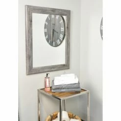 The BrandtWorks American Value Smooth Gray Barnwood Wall Mirror features a handcrafted frame with just a touch of dimension; the outermost edge protrudes a bit more than the inner edge nearest the glass mirror. The rustic gray barnwood finish keeps in step with contemporary farmhouse and cottage trends.