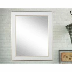 Touched with muted gold trim on the inner and outer rims of the frame, the BrandtWorks American Value White Cracked Gold Wall Mirror is upscale without being ostentatious. The flat profile frame wears a crackled white finish, making this an extremely versatile mirror that can pair naturally with styles ranging from modern French country to farmhouse to a transitional scene infused with Victorian-era accents.