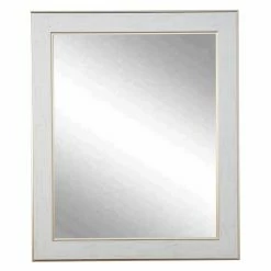 Touched with muted gold trim on the inner and outer rims of the frame, the BrandtWorks American Value White Cracked Gold Wall Mirror is upscale without being ostentatious. The flat profile frame wears a crackled white finish, making this an extremely versatile mirror that can pair naturally with styles ranging from modern French country to farmhouse to a transitional scene infused with Victorian-era accents.