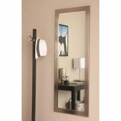 Hang up the BrandtWorks Embossed Silver Wall Mirror – 19.5W x 53H in. to brighten your space with its sleek contemporary style. The sturdy wooden frame is finished in a softly gleaming silver tone that looks crisp and clean. This wall mirror is simple to hang horizontally or vertically.