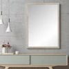 Add light and dimension to a room when you hang the BrandtWorks Farmhouse Gray and White Square Wall Mirror – 29.5W x 29.5H in.. This square mirror features a simple wooden frame with a soft gray and white finish for weathered style and texture.