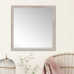 Add light and dimension to a room when you hang the BrandtWorks Farmhouse Gray and White Square Wall Mirror – 29.5W x 29.5H in.. This square mirror features a simple wooden frame with a soft gray and white finish for weathered style and texture.