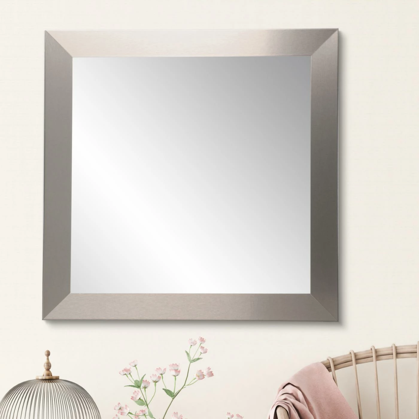 Add a touch of sleek dimension to your decor with the BrandtWorks Industrial Modern Home Accent Square Wall Mirror – 32W x 32H in.. This modern square wall mirror has a wood frame with a sleek silver finish that lends this wall mirror a futuristic metal look.
