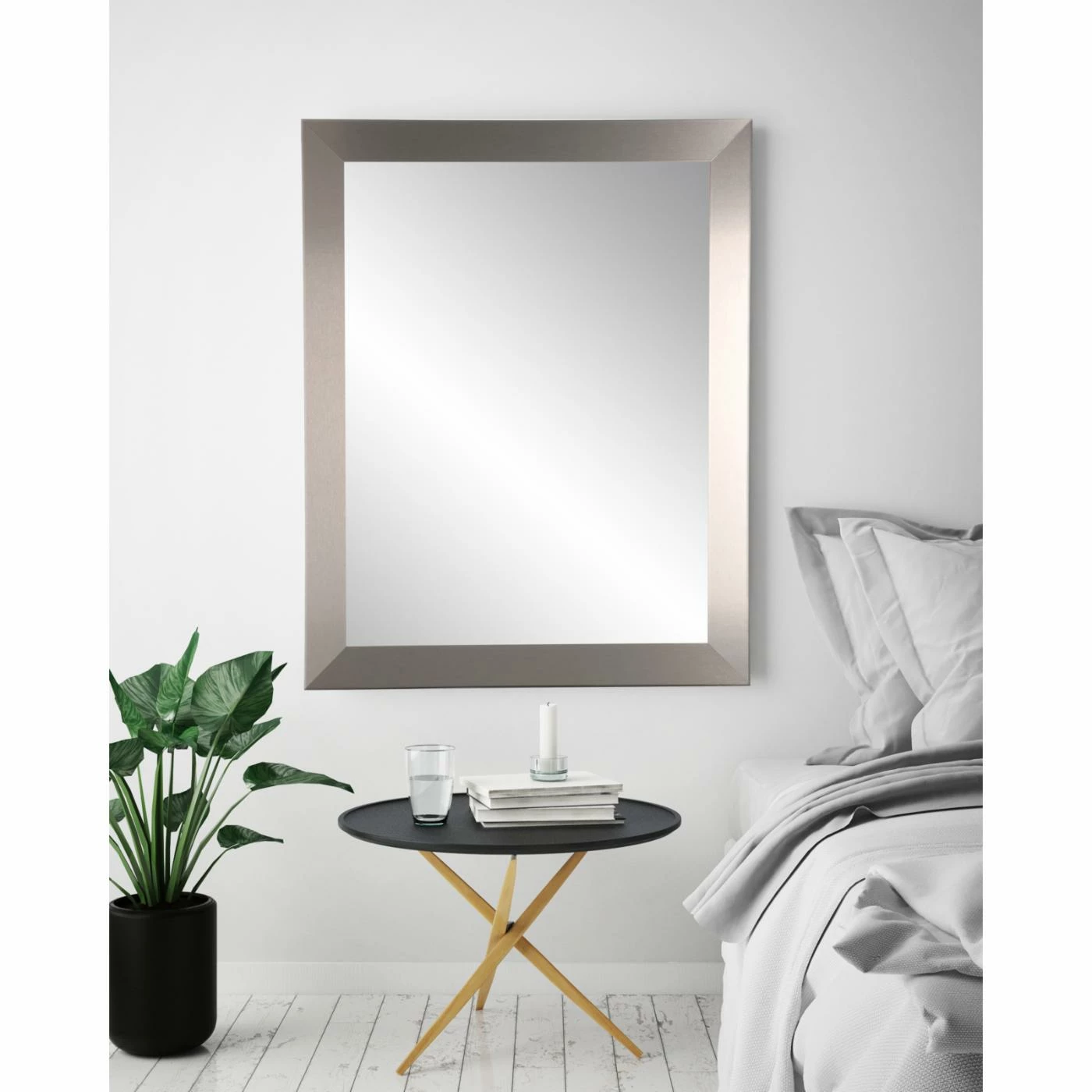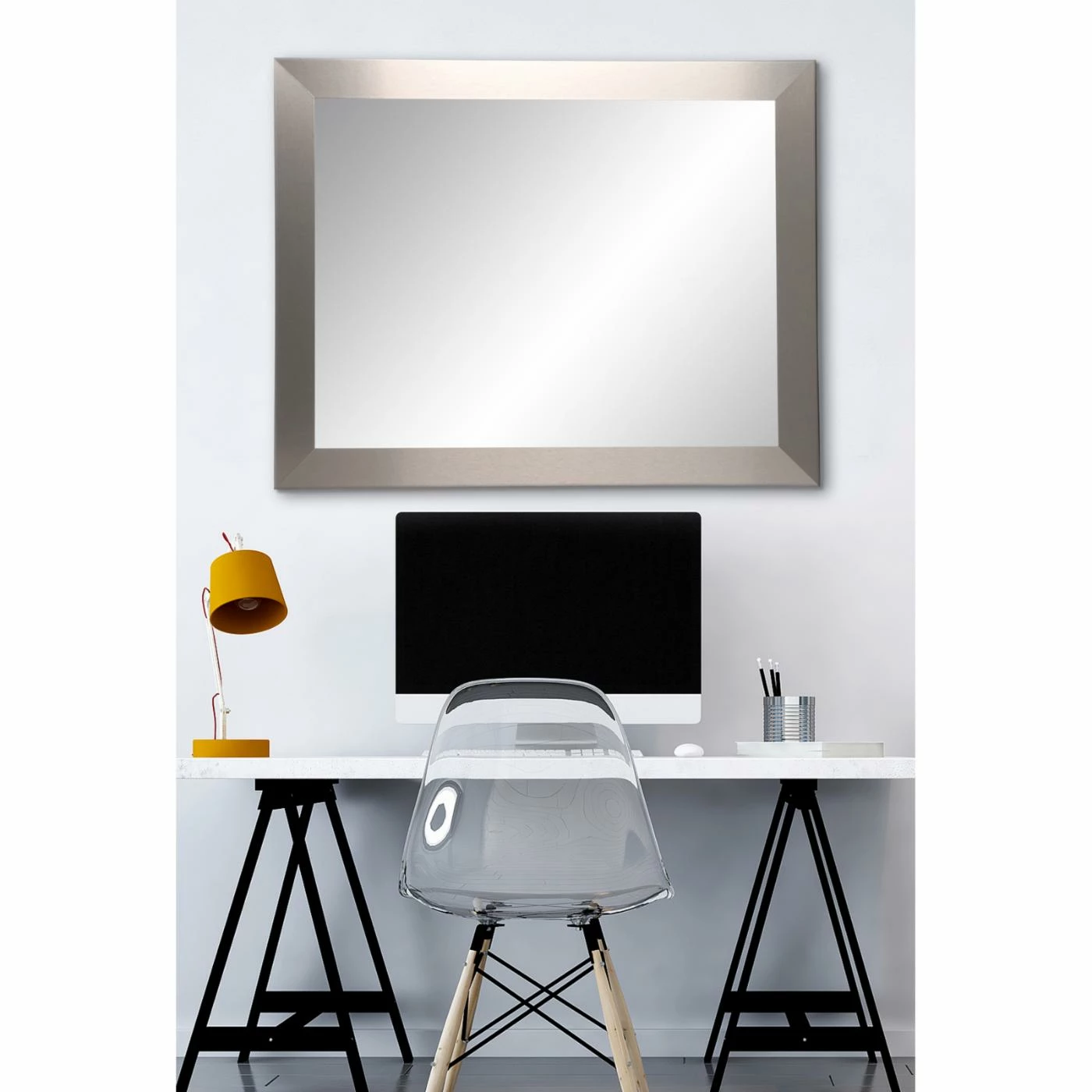 Durable wood forms a protective frame around the BrandtWorks Industrial Modern Home Accent Wall Mirror. Smooth, gleaming silver finishing lends this mirror a sleek futuristic look inspired by industrial elements.