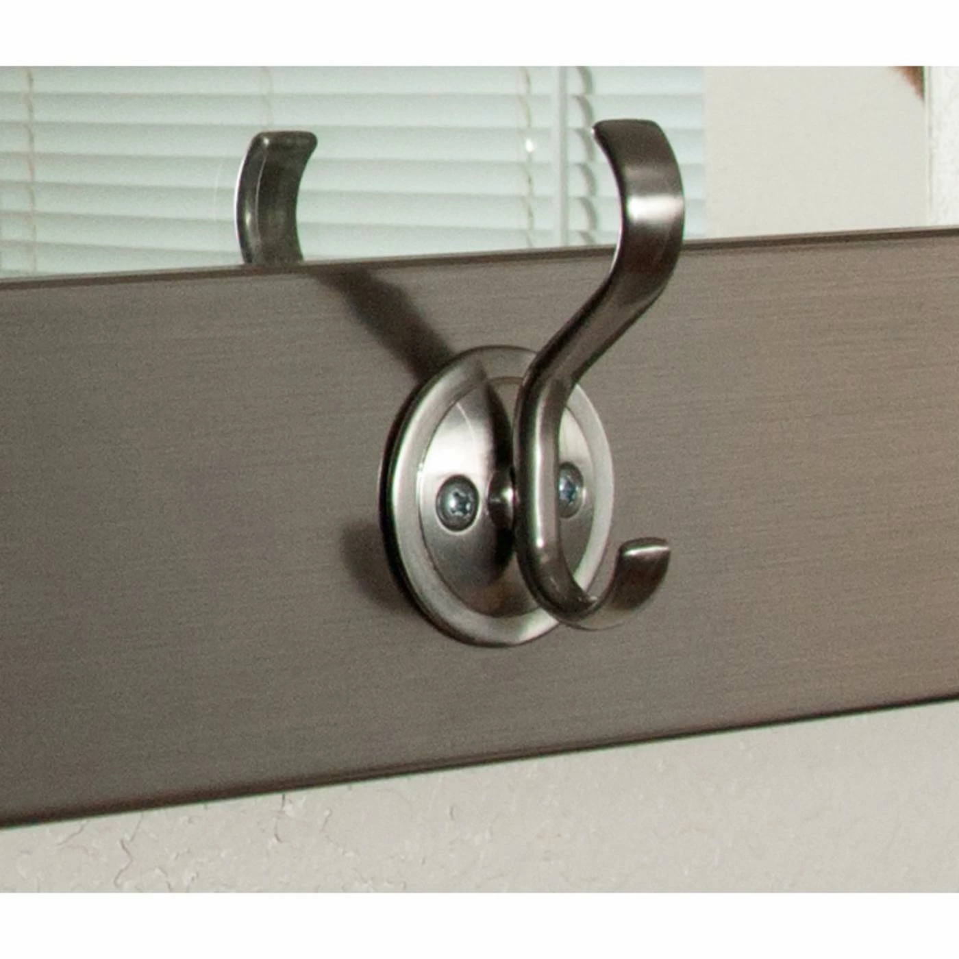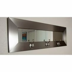 Get a glimpse of yourself on the way out the door with the BrandtWorks Last Look Modern Silver Wall Mirror. This satin-finish silver mirror features three coat-and-hat hooks, so itβs perfect in a hall, entry or mud room. It can also be used to dangle keys or mementos. The wide mirror strip has room for everyone to put final touches on your look as you breeze out the door or touch up in a powder room.