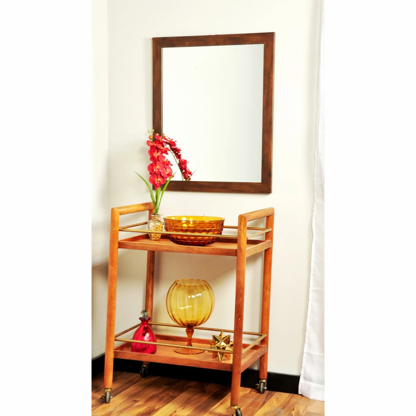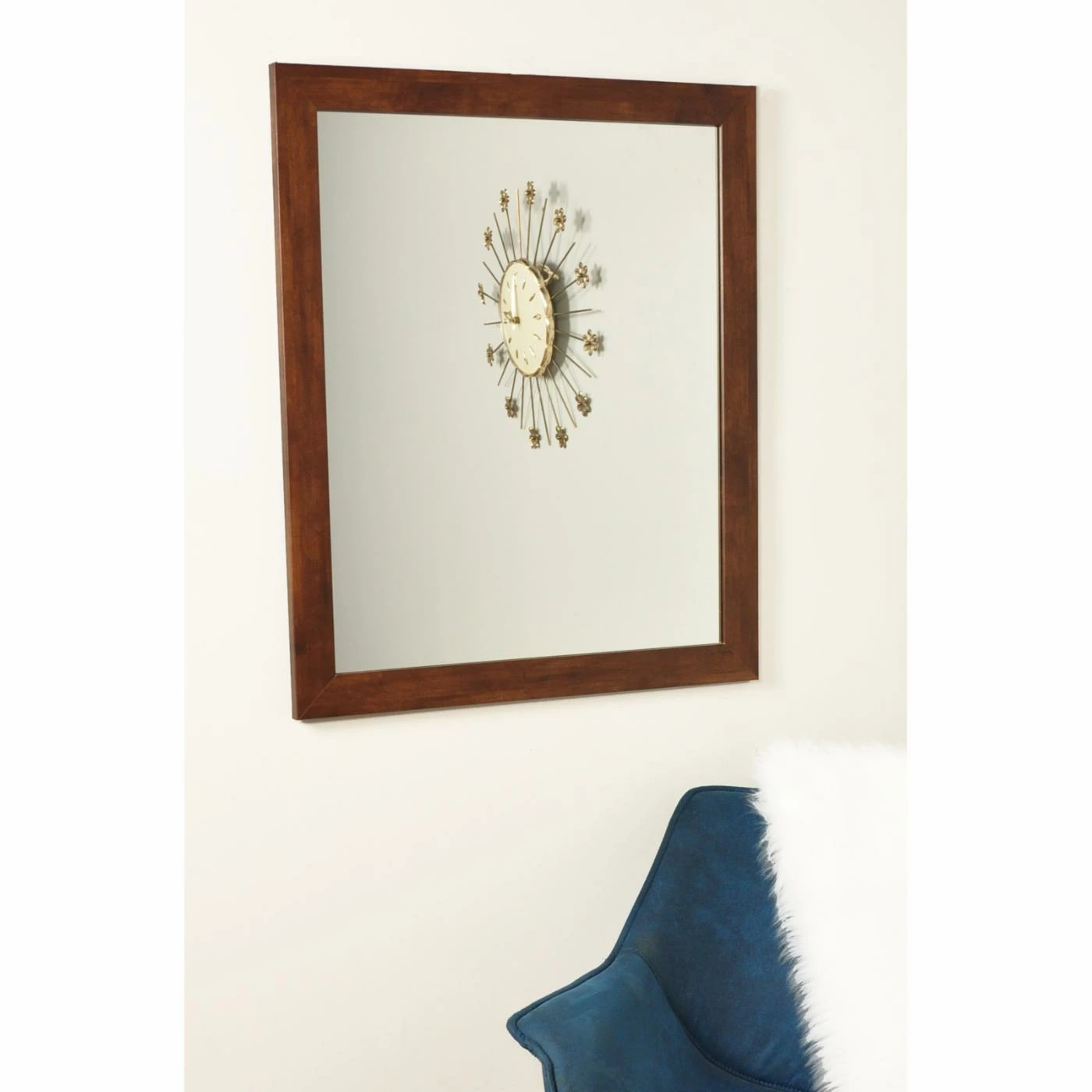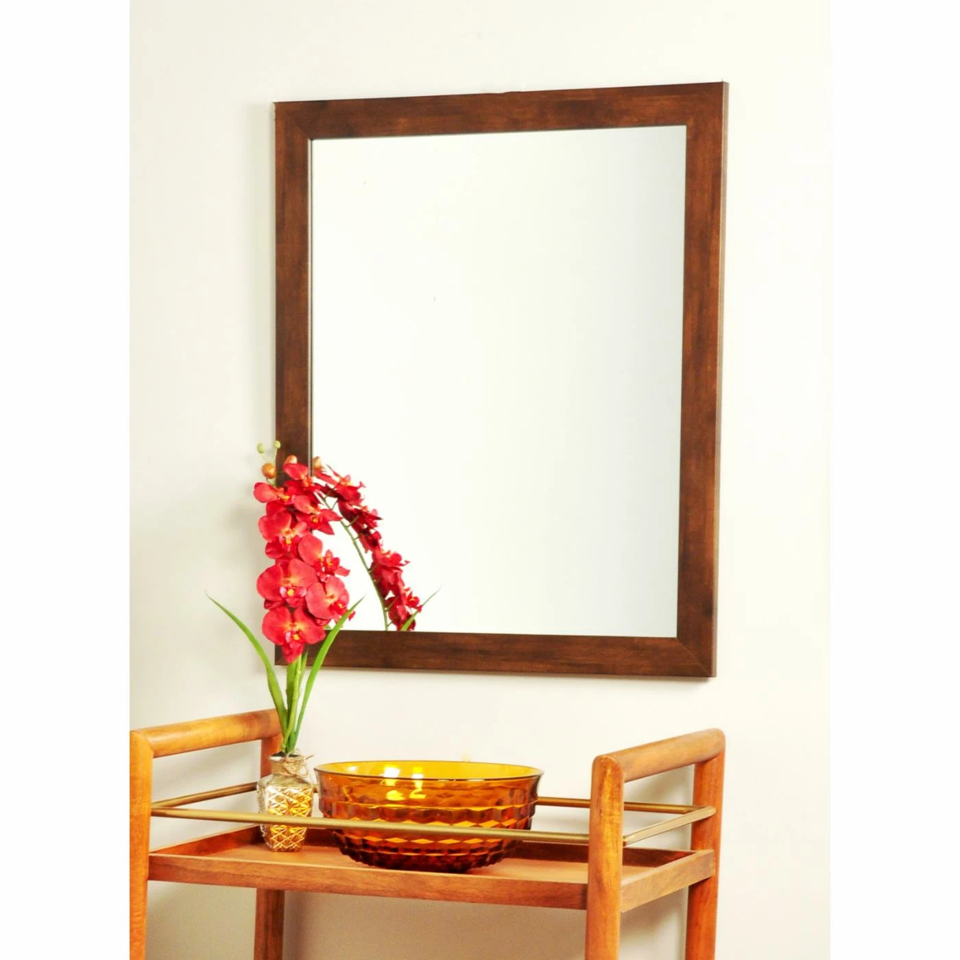 The BrandtWorks Mocha Brown Mid Century Wall Mirror features simple, versatile styling to coordinate with a range of dรฉcor schemes. The flat frame is 2 inches wide and is crafted of engineered wood. Select from available size options to wake up your space with this midcentury-inspired wall mirror. Premium non-beveled glass bounces light to create a brighter, airier atmosphere.