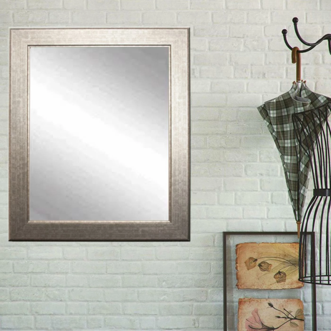 The BrandtWorks Modern Wall Mirror – Subway Silver makes any room in your home shine thanks to the sleek, thick frame with a shimmering silver finish and a touch of distressed detailing. This durable wall mirror has a sturdy wood frame, and it can be hung up horizontally over a mantel or vertically in a hallway or your bedroom. Choose the best size available that perfectly suits your dΓ©cor needs.