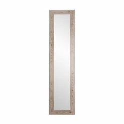 The BrandtWorks Rectangular White Slim Full Length Wall Mirror boasts durable engineered wood construction in a soft gray and white finish over a woodgrain texture. This wall mirror showcases a rectangular design to be displayed in a vertical or horizontal position.
